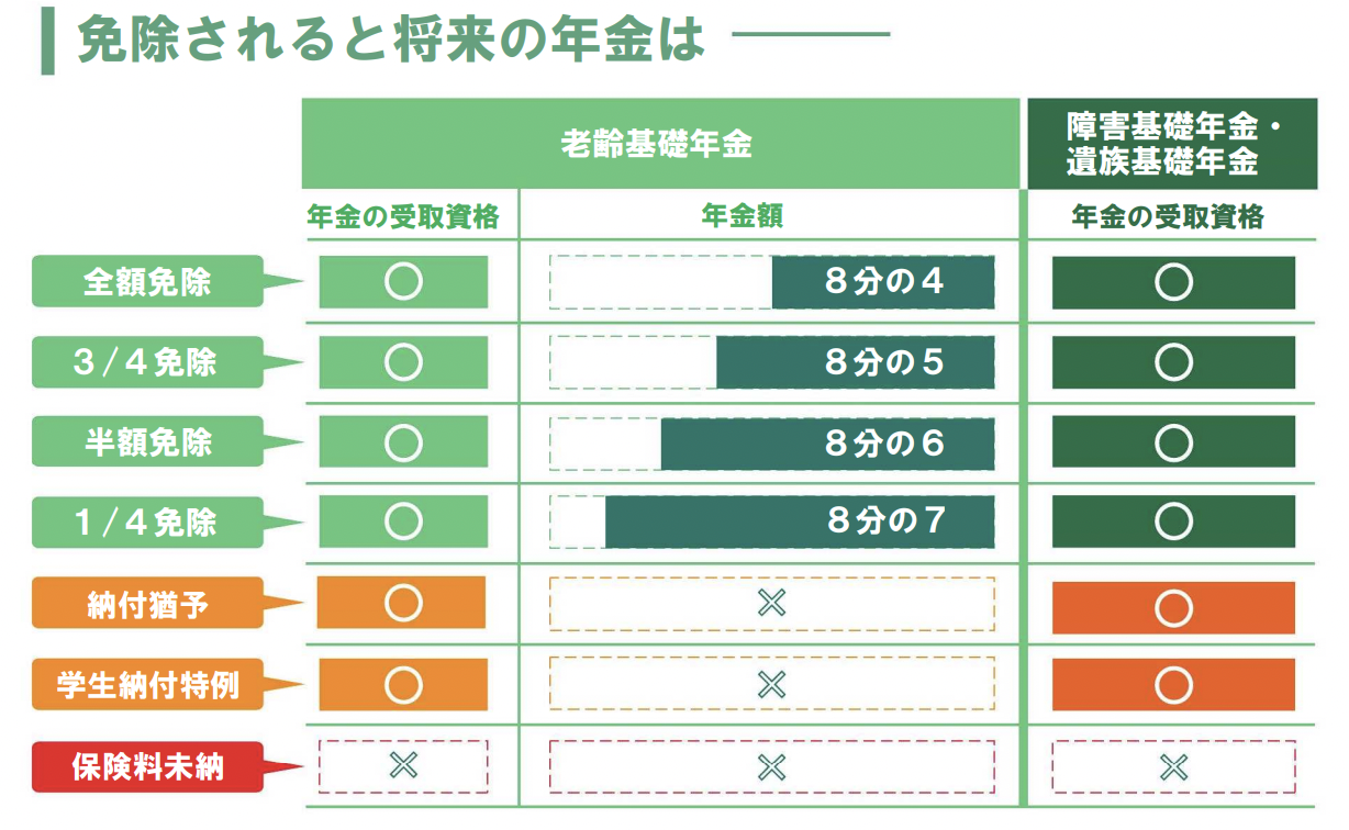 免除期間や免除額に応じて、将来の年金額は減額されます。